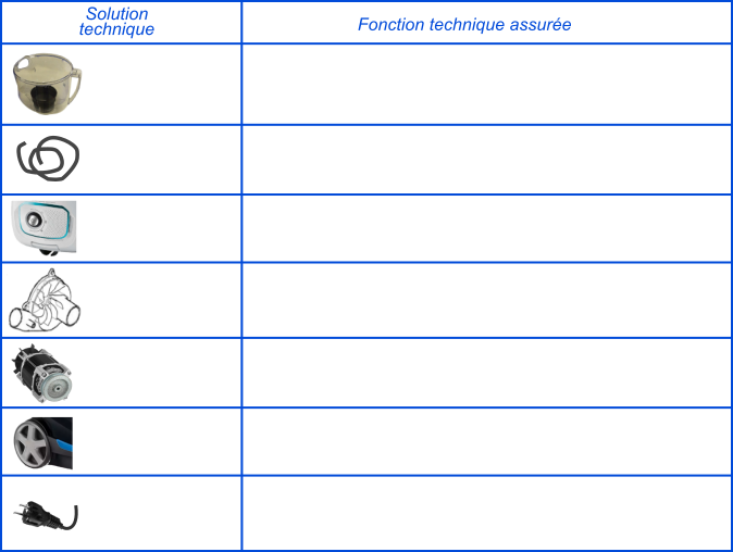 Identifier le nom des pièces (solutions techniques) et associer la fonction technique correspondante